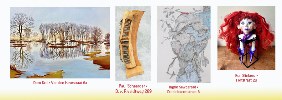 Ook dit jaar is er weer een overzichtsexpositie in de etalage van Albert Heijn aan de Daalseweg 200 (tussen de winkel en de Wanco). Iedere kunstenaar heeft daarvoor een speciaal werk gemaakt.